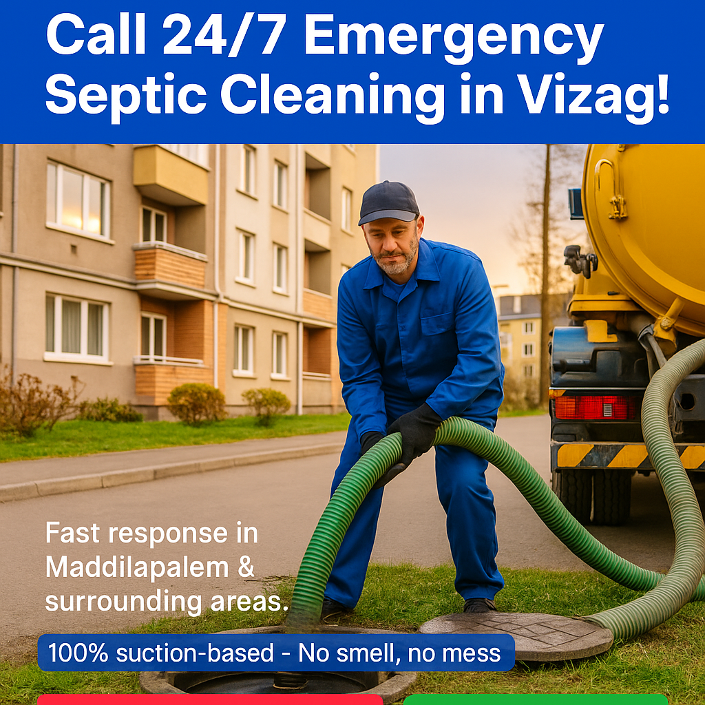 Dilraju Septic Tank Cleaning is a GVMC-approved and licensed septic cleaning service based in Maddilapalem, Visakhapatnam. We offer fast, reliable, and completely hygienic suction-based tank cleaning for apartments, homes, hotels, hostels, shops, clinics, schools, and commercial complexes.